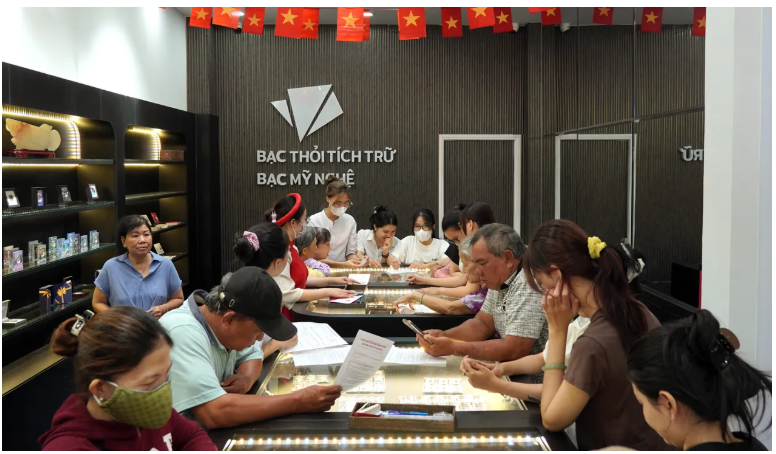 Giá bạc hôm nay 17/1/2026: Bạc trong nước biến động trái chiều, áp lực giảm gia tăng. Trong ảnh: Khách hàng giao dịch và tìm hiểu về bạc tại hệ thống cửa hàng của Công ty Kim Loại Quý Ancarat.