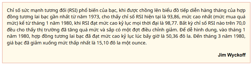 Wyckoff dự đoán giá bạc sẽ giảm mạnh vào giữa năm 2026. “Nhưng sau khi suy thoái, bất cứ khi nào nó xảy ra, sẽ lại có một chu kỳ bùng nổ khác”, ông nói thêm. “Đó là bản chất đã được chứng minh liên tục của thị trường hàng hóa thô”.