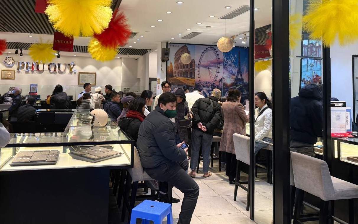 Ghi nhận thêm tại phố Xã Đàn, nhiều cửa hàng kinh doanh bạc cũng dừng nhận khách giao dịch do lượng người xếp hàng quá đông.