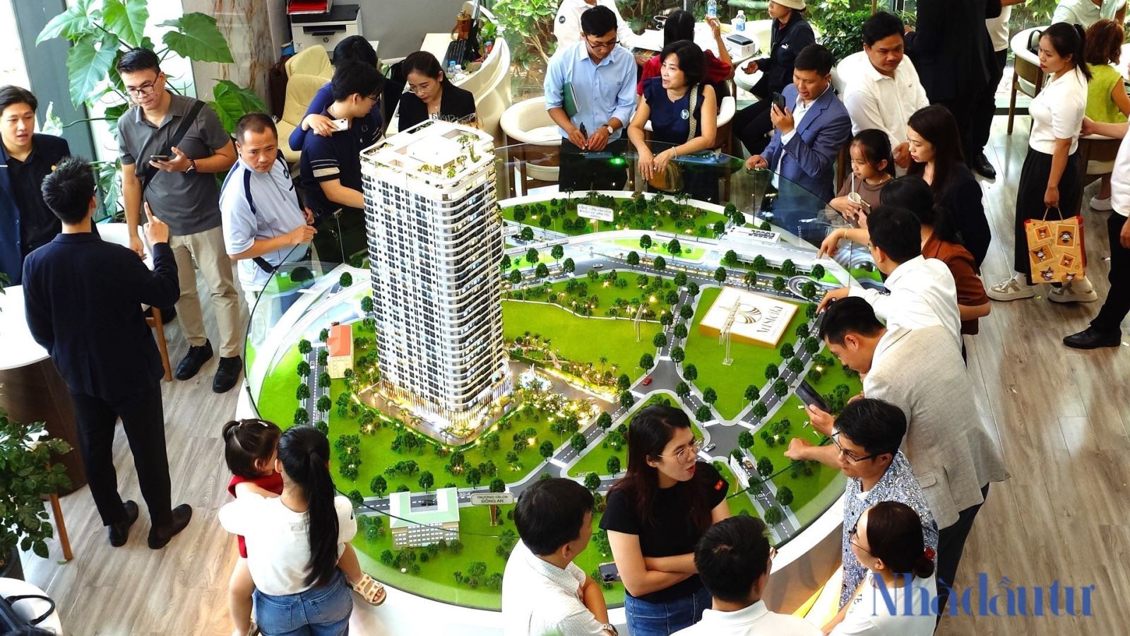 Khách hàng xem sa bàn một dự án mới ở TP.HCM với mức giá chào bán hơn 40 triệu đồng/m2, cách xa trung tâm. Ảnh: VP