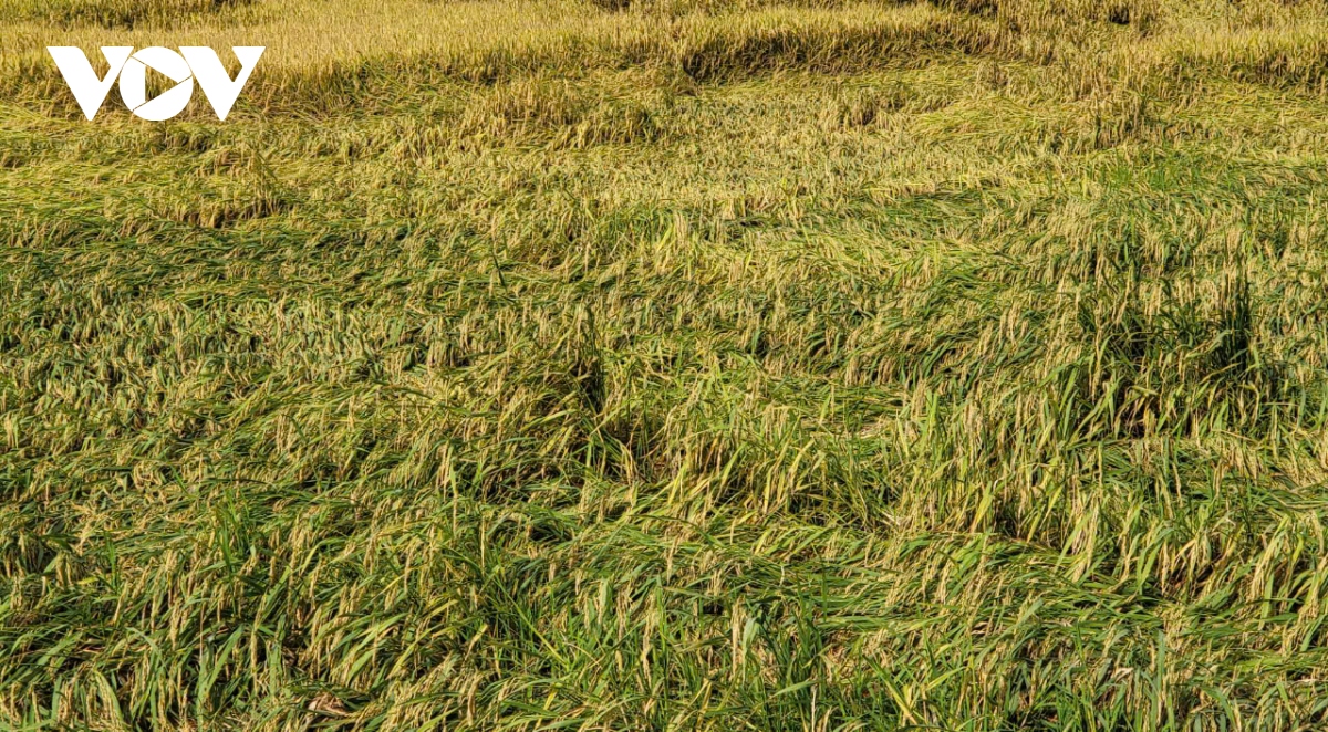 Nhiều diện tích lúa bị đổ ngã do mưa kèm dông lốc