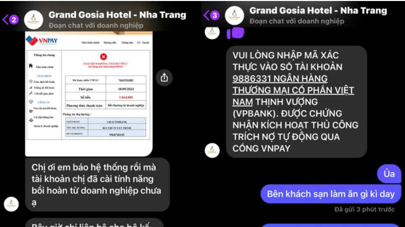 Đáng chú ý, chúng còn tạo các tài khoản ngân hàng trùng tên với khách sạn nhằm tạo niềm tin để yêu cầu nạn nhân chuyển tiền cọc vào để chiếm đoạt.