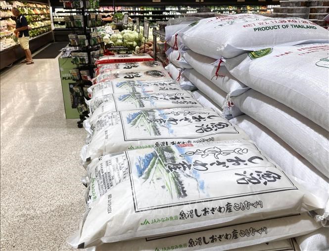 Gạo Nhật Bản được bày bán tại siêu thị. Ảnh: Kyodo/TTXVN