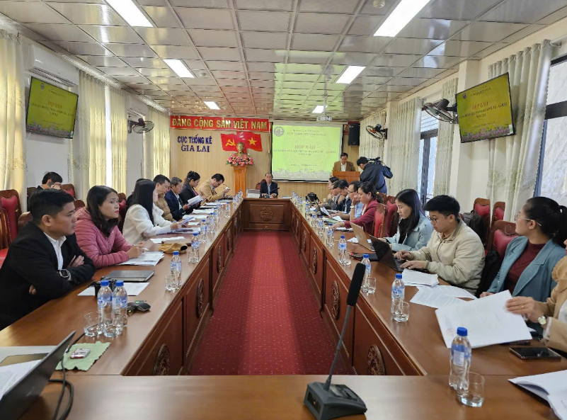 Toàn cảnh buổi họp báo công bố số liệu thống kê kinh tế - xã hội của tỉnh Gia Lai năm 2024.