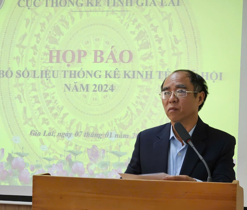 Ông Nguyễn Đình Tám, quyền Cục trưởng Cục Thống kê tỉnh Gia Lai phát biểu tại họp báo.