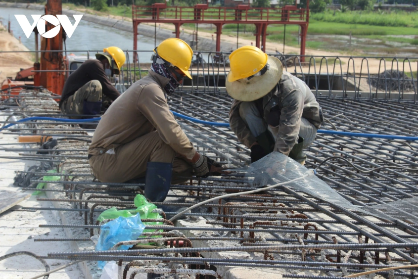 Công nhân thi một cây cầu trên công trường trọng điểm tỉnh Gia Lai.