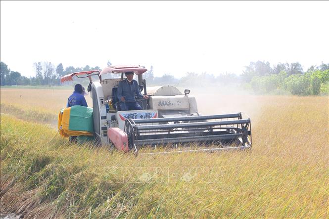 Nông dân Bạc Liêu thu hoạch lúa.
