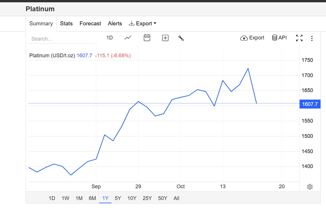 Diễn biến giá bạch kim thế giới. Nguồn: Trading Economics.
