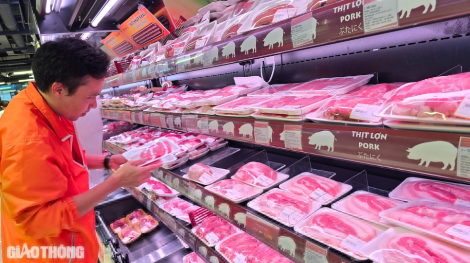 Quầy thịt lợn tại siêu thị FujiMart Ngọc Khánh. Ảnh: Hồng Hạnh.