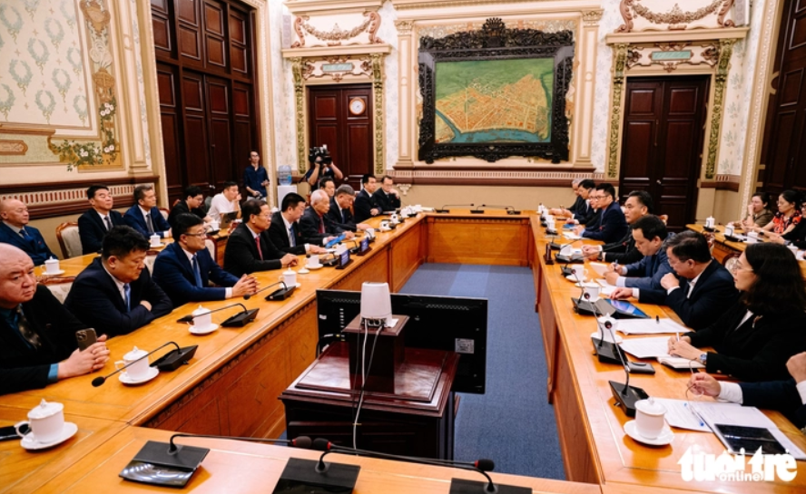 Toàn cảnh Phó chủ tịch UBND TP.HCM Nguyễn Lộc Hà tiếp đoàn lãnh đạo các tập đoàn, công ty Trung Quốc chiều 17-11 - Ảnh: THANH HIỆP