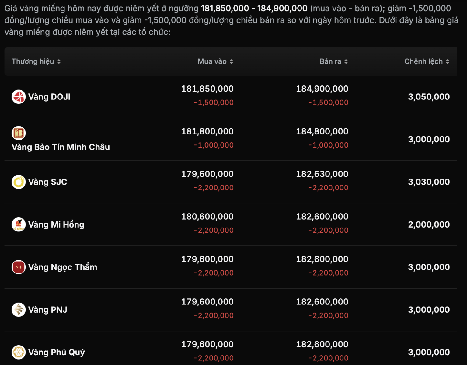 Bên cạnh đó, mức chênh lệch giá mua - bán do các đơn vị kinh doanh vàng thiết lập hiện vẫn duy trì khoảng 3 triệu đồng/lượng. Một số chuyên gia phân tích thị trường cho rằng biên độ này phản ánh việc các nhà vàng đang chuyển phần lớn rủi ro biến động giá về phía người mua (chưa có nguồn xác thực chính thống).