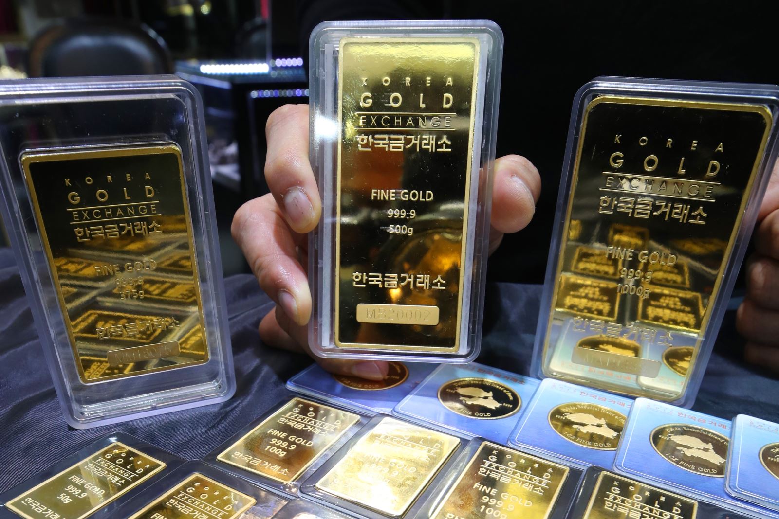 Vàng miếng được bày bán tại sàn giao dịch vàng ở Seoul, Hàn Quốc. Ảnh: Yonhap/TTXVN