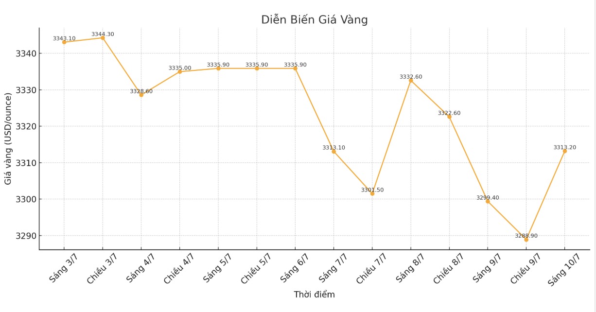 Diễn biến giá vàng thế giới những phiên giao dịch gần đây. Biểu đồ: Thùy Linh