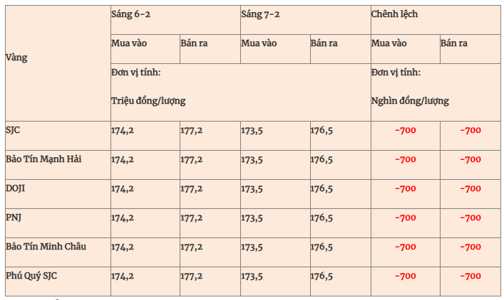 Giá vàng miếng trong nước cập nhật sáng 7-2 như sau: