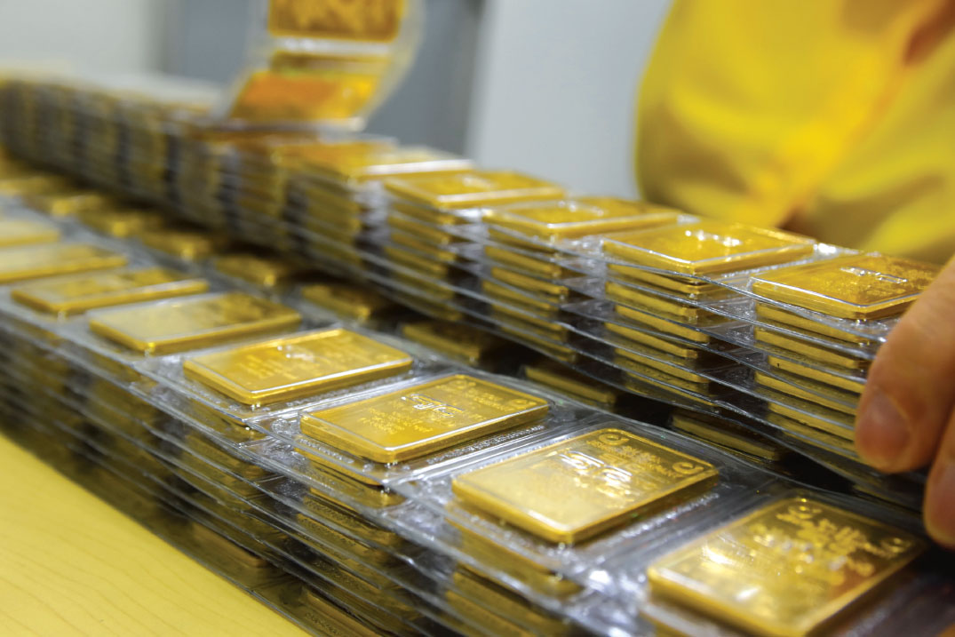 Khoảng 17 giờ ngày 18-11, Công ty SJC niêm yết giá mua - bán vàng miếng ở mức 147,3 - 149,3 triệu đồng/lượng. Ảnh: LÊ VŨ