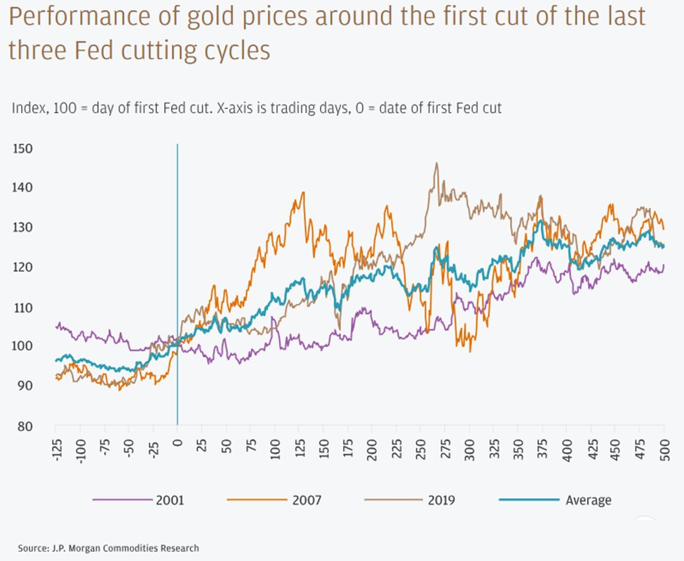 Theo dự đoán của J.P. Morgan Research, giá vàng sẽ đạt đỉnh 2.300 USD/oz vào năm 2025. Dự đoán này giả định chu kỳ cắt giảm của Fed ban đầu mang lại mức cắt giảm 125 điểm cơ bản (bp) trong nửa cuối năm 2024, đẩy giá vàng lên mức cao mới về danh nghĩa.