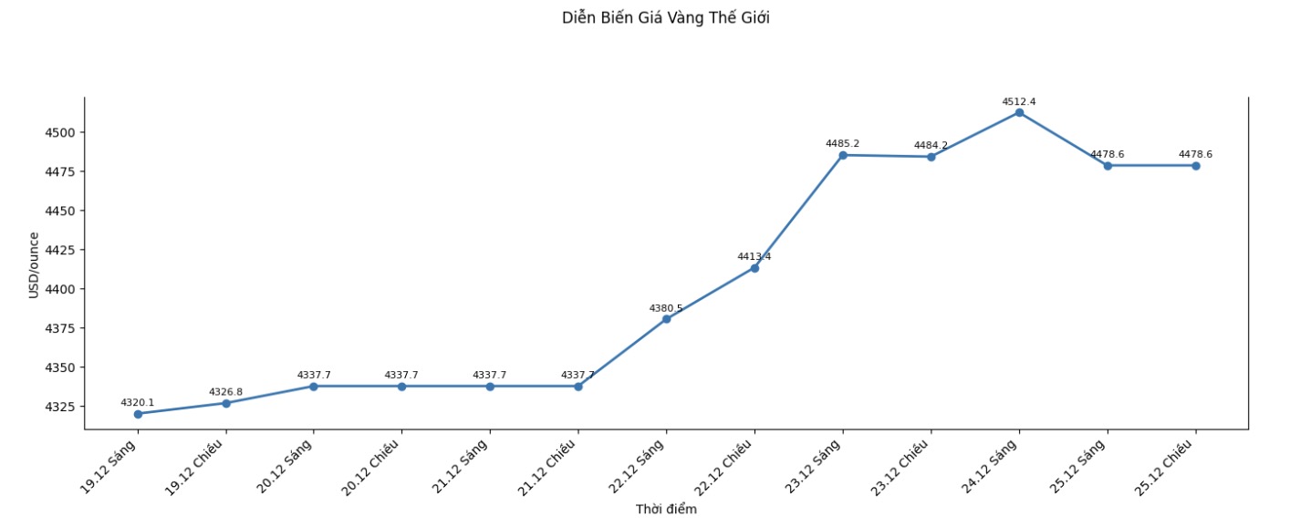Diễn biến giá vàng thế giới những phiên giao dịch gần đây. Biểu đồ: Khương Duy