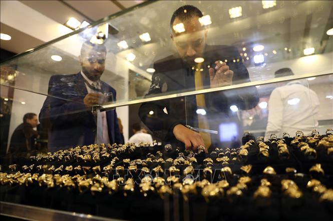 Trang sức vàng được trưng bày tại triển lãm ở Cairo, Ai Cập. Ảnh: THX/TTXVN