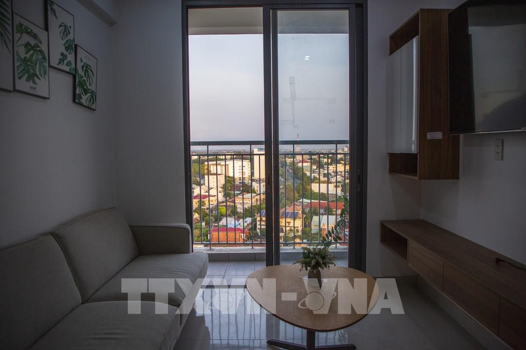 Căn hộ mẫu tại tầng 15 Dự án chung cư nhà ở xã hội Golden City hướng về trung tâm phường Tân Ninh, tỉnh Tây Ninh. Ảnh: Giang Phương - TTXVN