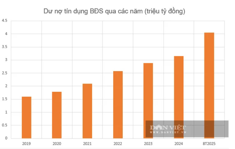 Dư nợ tín dụng bất động sản qua các năm. Biểu đồ: Dân Việt.