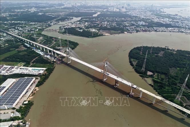 Cầu Bình Khánh bắc qua sông Soài Rạp (Thành phố Hồ Chí Minh) trên cao tốc Bến Lức - Long Thành được hợp long vào ngày 28/6/2025 vừa qua. Ảnh: Hồng Đạt/TTXVN