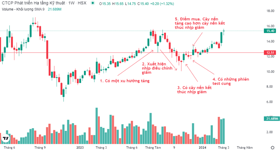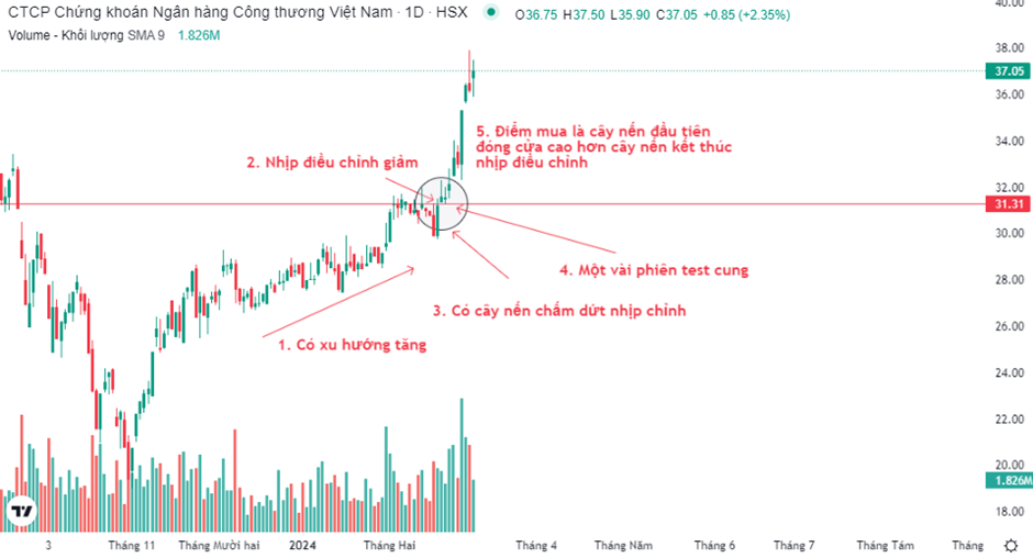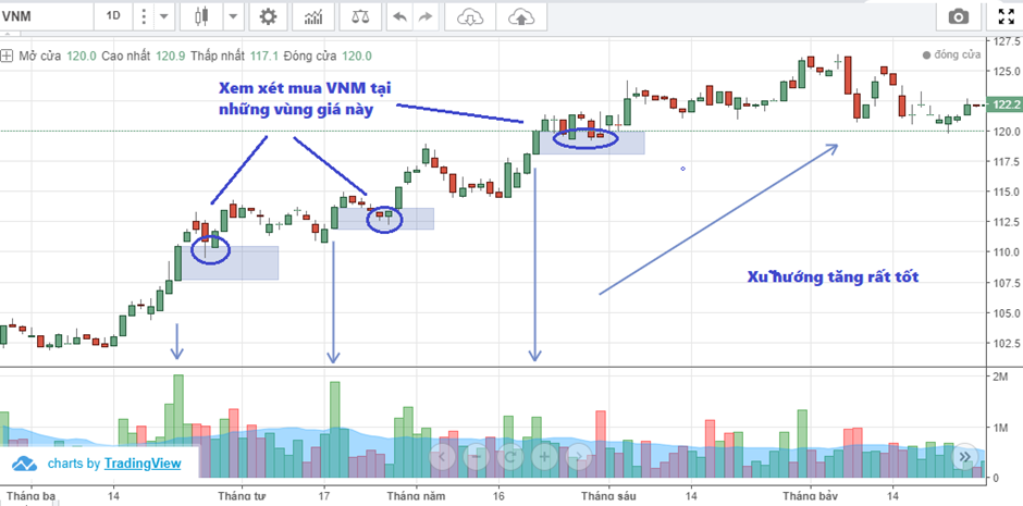 Ngoài cách mua khi Break-out thì mua trong pha Pull Back (nhịp hồi, điều chỉnh,...) thường đạt được lợi nhuận và vị thế tốt hơn nhiều.