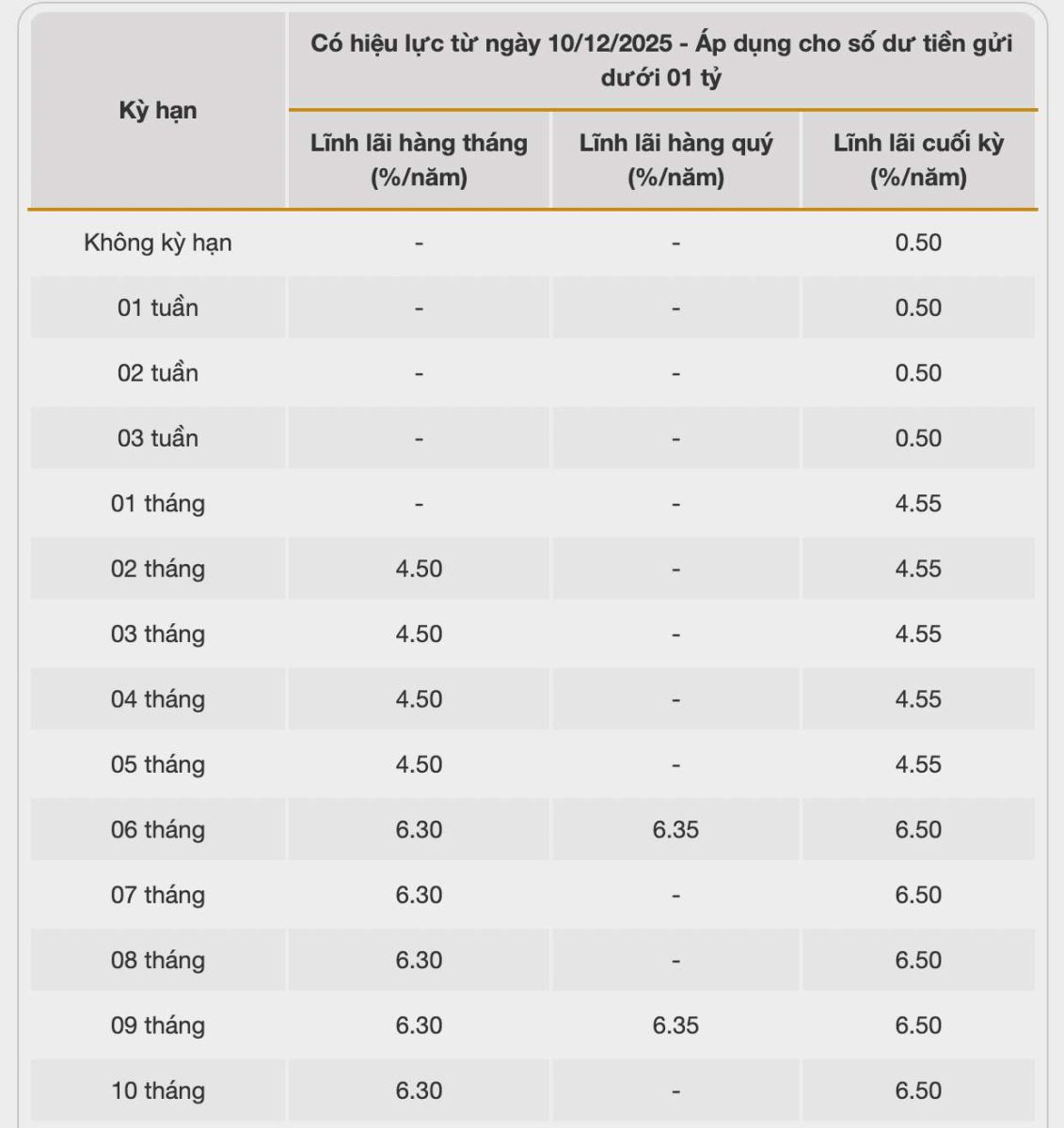 * Thông tin về lãi suất chỉ mang tính chất tham khảo và có thể thay đổi trong từng thời kỳ. Vui lòng liên hệ điểm giao dịch ngân hàng gần nhất hoặc hotline để được tư vấn cụ thể.