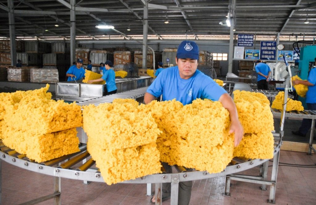 Chế biến mủ cao su tại một nhà máy. Ảnh: VRG cung cấp.