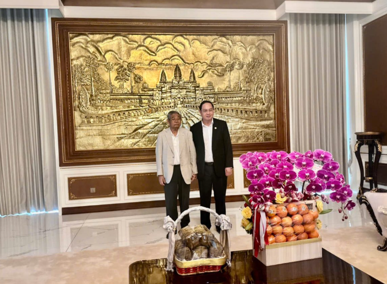Phó TGĐ VRG Trương Minh Trung (bên phải) chụp hình lưu niệm với Ngài Yim Chhayly – Thành viên Hội đồng Cơ mật tối cao của Quốc vương (hàm Phó Thủ tướng), nguyên Phó Thủ tướng Chính phủ Vương quốc Campuchia