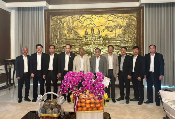 Tiếp tục chương trình công tác, ông Trương Minh Trung cùng Đoàn đã đến thăm, chúc Tết Ngài Đại sứ Việt Nam tại Campuchia, thể hiện sự gắn kết, phối hợp chặt chẽ giữa Tập đoàn với các cơ quan đại diện ngoại giao Việt Nam ở nước ngoài.