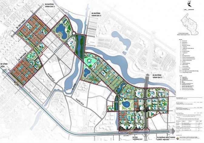 Theo quy hoạch, các tòa nhà cao tầng (25-30 tầng) nằm dọc trục đường Mê Linh và đường vành đai 3.5. Đồ án cũng định hướng phát triển công viên lễ hội, phố đi bộ, cùng các khu cây xanh, thể thao, trường học, y tế và văn hóa.