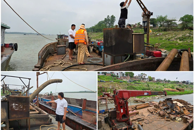 Tiếp đó, khoảng 10h, tổ công tác phát hiện thêm 2 phương tiện đang neo đậu cách đó không xa, chủ phương tiện đang tiến hành tháo dỡ, cắt bỏ các thiết bị khai thác cát. Lực lượng chức năng đã lập biên bản đồng thời bàn giao Công an xã giám sát quá trình tháo dỡ, phục hồi phương tiện đúng quy định.