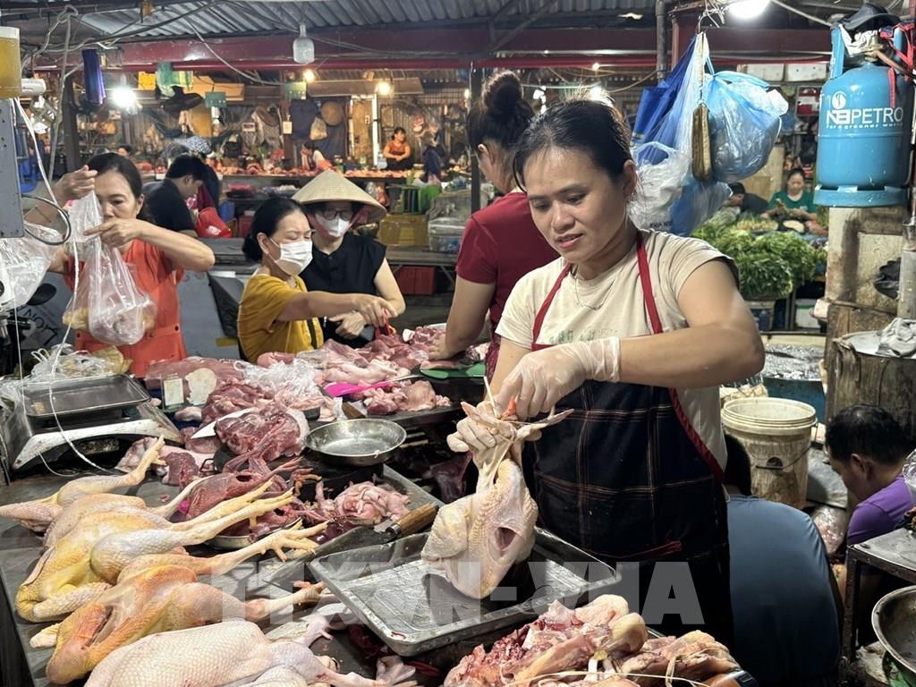 Tiểu thương bán hàng tại khu chợ ở phường Nhân Chính, thành phố Hà Nội. Ảnh: TTXVN phát