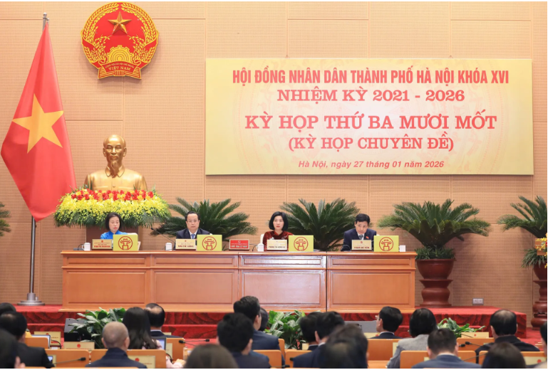 Sáng 27/1, tại kỳ họp chuyên đề (Kỳ họp thứ 31) HĐND TP Hà Nội đã thông qua Nghị quyết thực hiện khoản 4 điều 7 Nghị quyết số 258/2025/QH15 ngày 11/12/2025 của Quốc hội về thí điểm một số cơ chế, chính sách đặc thù để thực hiện các dự án lớn, quan trọng trên địa bàn Thủ đô.