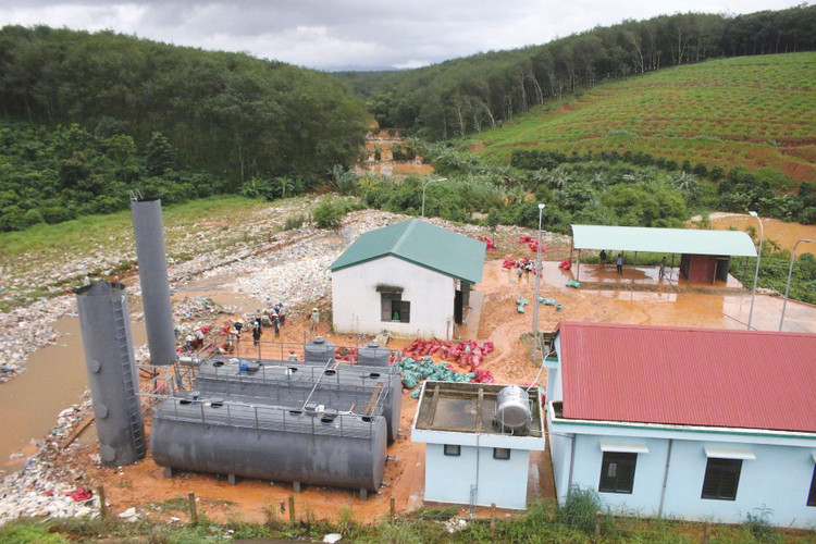 Dự án Khu liên hiệp xử lý rác thải rắn liên hợp Ngọc Hồi được UBND tỉnh Kon Tum (cũ) phê duyệt chủ trương năm 2017, tổng mức đầu tư 49 tỷ đồng. Dự án có quy mô 6,8 ha, do Ban Quản lý dự án đầu tư xây dựng (QLDA ĐTXD) huyện Ngọc Hồi (cũ) đại diện chủ đầu tư, trực tiếp mời thầu. Trong đó, Công ty TNHH MTV Bảo Trân Kon Tum (trụ sở tại xã Sa Thầy) trúng Gói thầu Xây lắp với giá 38,520 tỷ đồng (giảm 8 triệu đồng so với giá gói thầu), thời hạn thi công 300 ngày. Theo kế hoạch, Gói thầu phải hoàn thành vào cuối năm 2022, nhưng do chậm trễ xây dựng nên đến tháng 4/2025 mới được nghiệm thu, đưa vào vận hành. Dù vậy, mới vận hành được 3 tháng, công trình đã xảy ra sự cố vỡ thân hố chứa rác khiến ống thu gom nước thải bị cuốn trôi, các bể chứa nước thải và bể xử lý kỹ thuật bị vùi lấp hoàn toàn; rác và nước thải từ hố trôi về phía hạ du, vùi lấp khoảng 9 ha đất nông nghiệp của 12 hộ dân, trong đó chủ yếu là diện tích nuôi trồng thủy sản… Đại diện lãnh đạo UBND xã Bờ Y cho biết, sau khi sự cố xảy ra, Ban QLDA và Dịch vụ công ích xã Bờ Y đã tổ chức thu gom, dọn dẹp rác thải tràn ra môi trường, đồng thời dùng rọ đá gia cố phần thân hố chứa bị vỡ.
