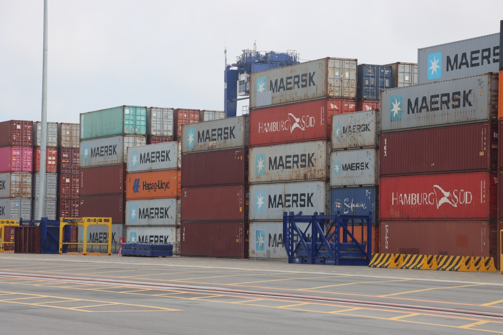 Hàng hóa xuất nhập khẩu tại cảng Hateco Hải Phòng. Ảnh: T.Bình.