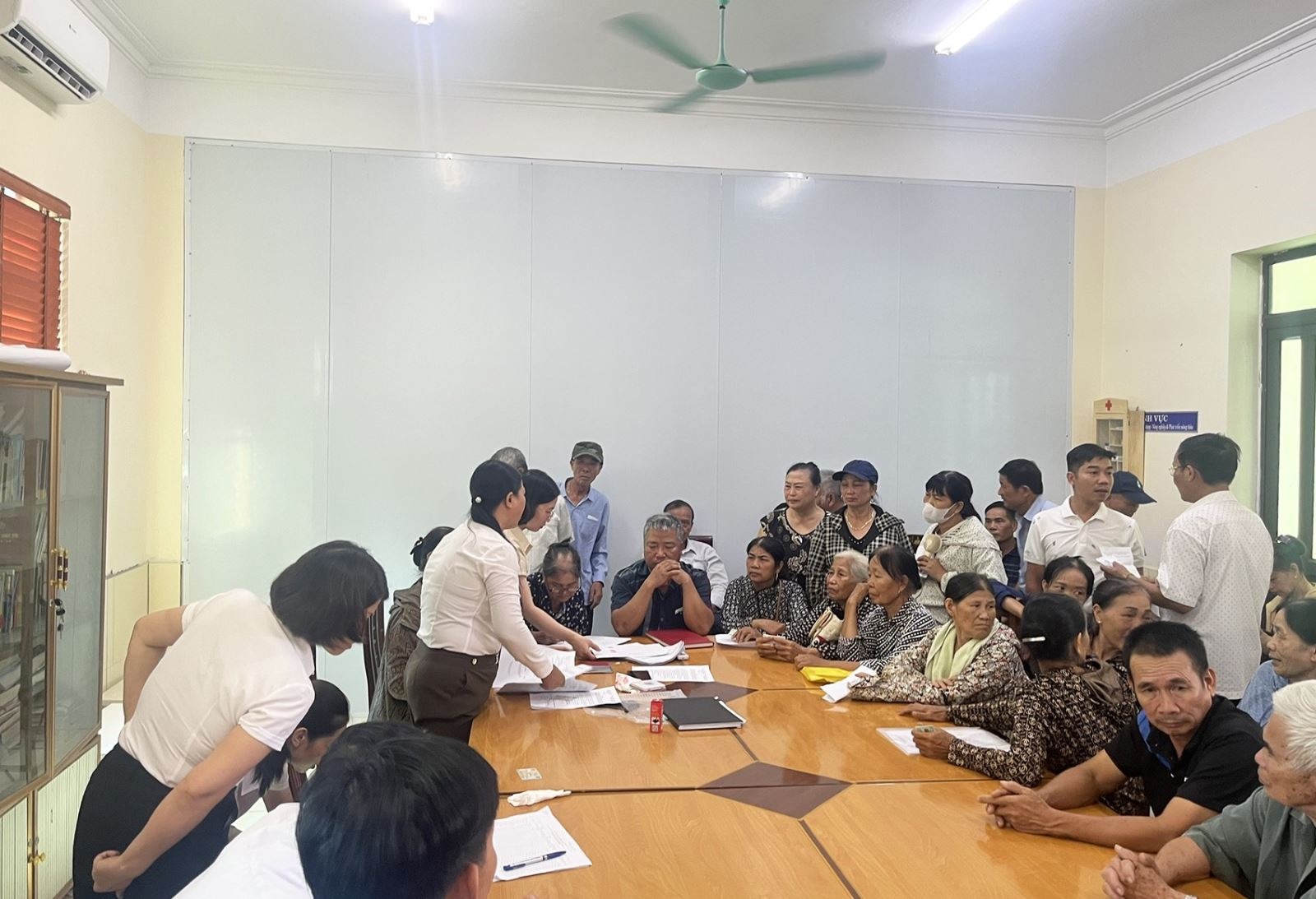 Xã Nguyễn Lương Bằng tổ chức chi trả bồi thường giải phóng mặt bằng thu hồi thực hiện Dự án đầu tư xây dựng đường tỉnh 394B, chiều 8/8. Ảnh Cổng TTĐT xã Nguyễn Lương Bằng.