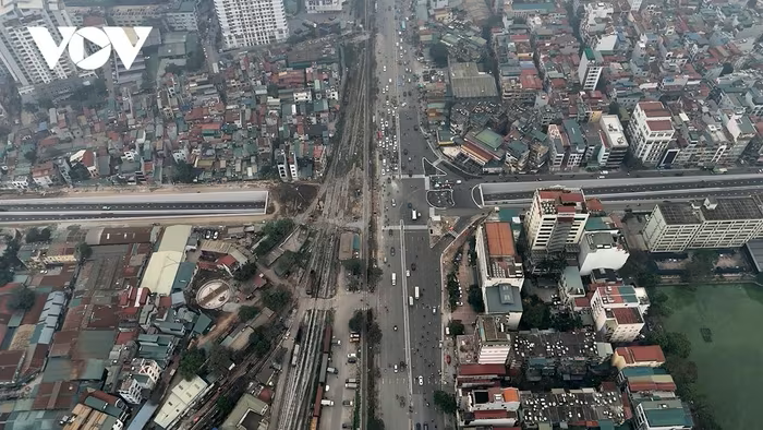 Phần hầm kín xuyên qua đường Giải Phóng và tuyến đường sắt ngay gần ga Giáp Bát.