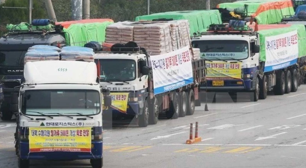 Các xe hàng viện trợ nhân đạo của Hàn Quốc dành cho Triều Tiên. (Ảnh tư liệu: YONHAP/TTXVN)
