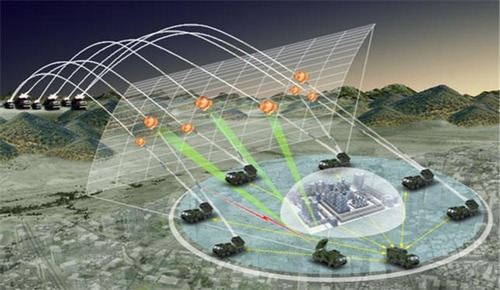 Ảnh minh họa về hệ thống Phòng thủ Tên lửa Tầm thấp (LAMD) đánh chặn các loạt đạn pháo đang bay tới. Ảnh: DAPA