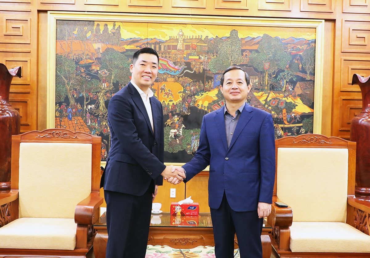 Chủ tịch UBND tỉnh Phạm Hoàng Sơn (bên phải) tiếp và làm việc với ông Kang Euisik, Phó Tổng Giám đốc Công ty TNHH Samsung Display Việt Nam.