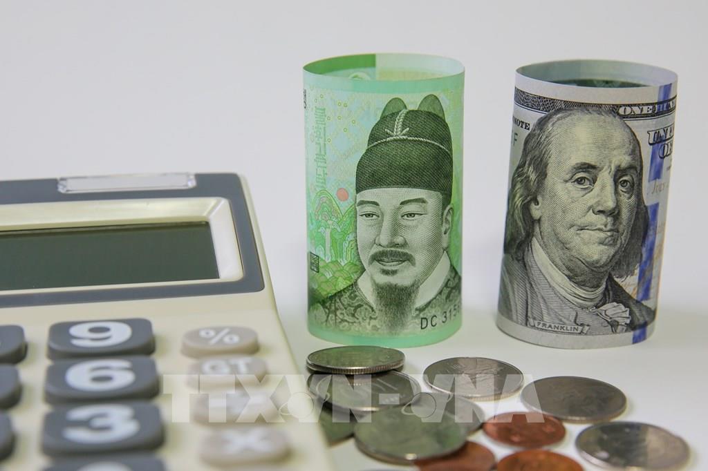 Đồng won (trái) của Hàn Quốc và đồng USD. Ảnh: THX/TTXVN