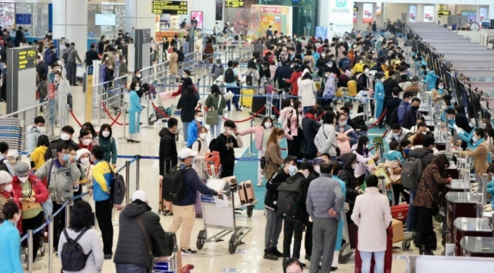Hành khách tại sân bay Nội Bài.