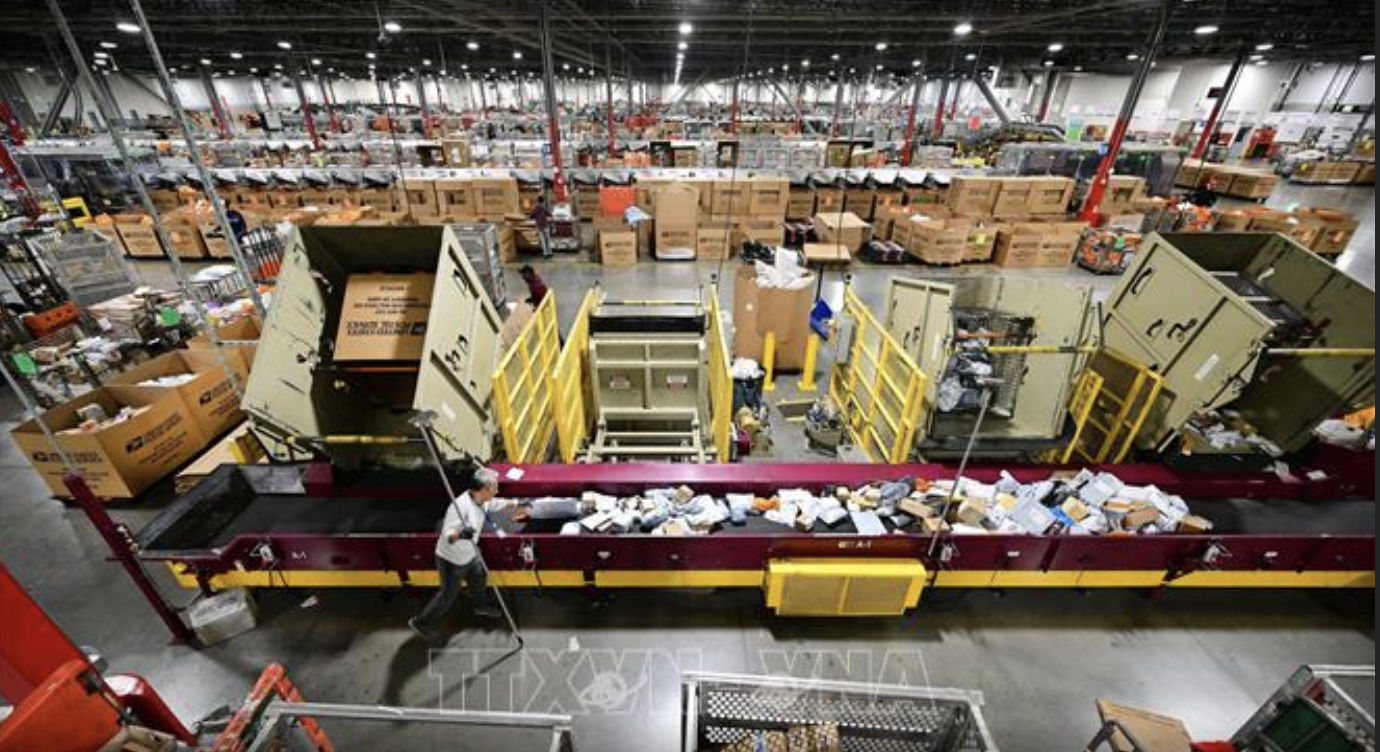 Nhân viên bưu điện phân loại bưu phẩm tại Công ty Dịch vụ Bưu chính ở Los Angeles. Ảnh tư liệu: AFP/TTXVN