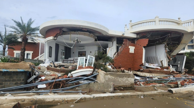 Hàng loạt căn biệt thự tại biển Xuân Thành sập đổ, hư hỏng nặng nề trong bão số 10.