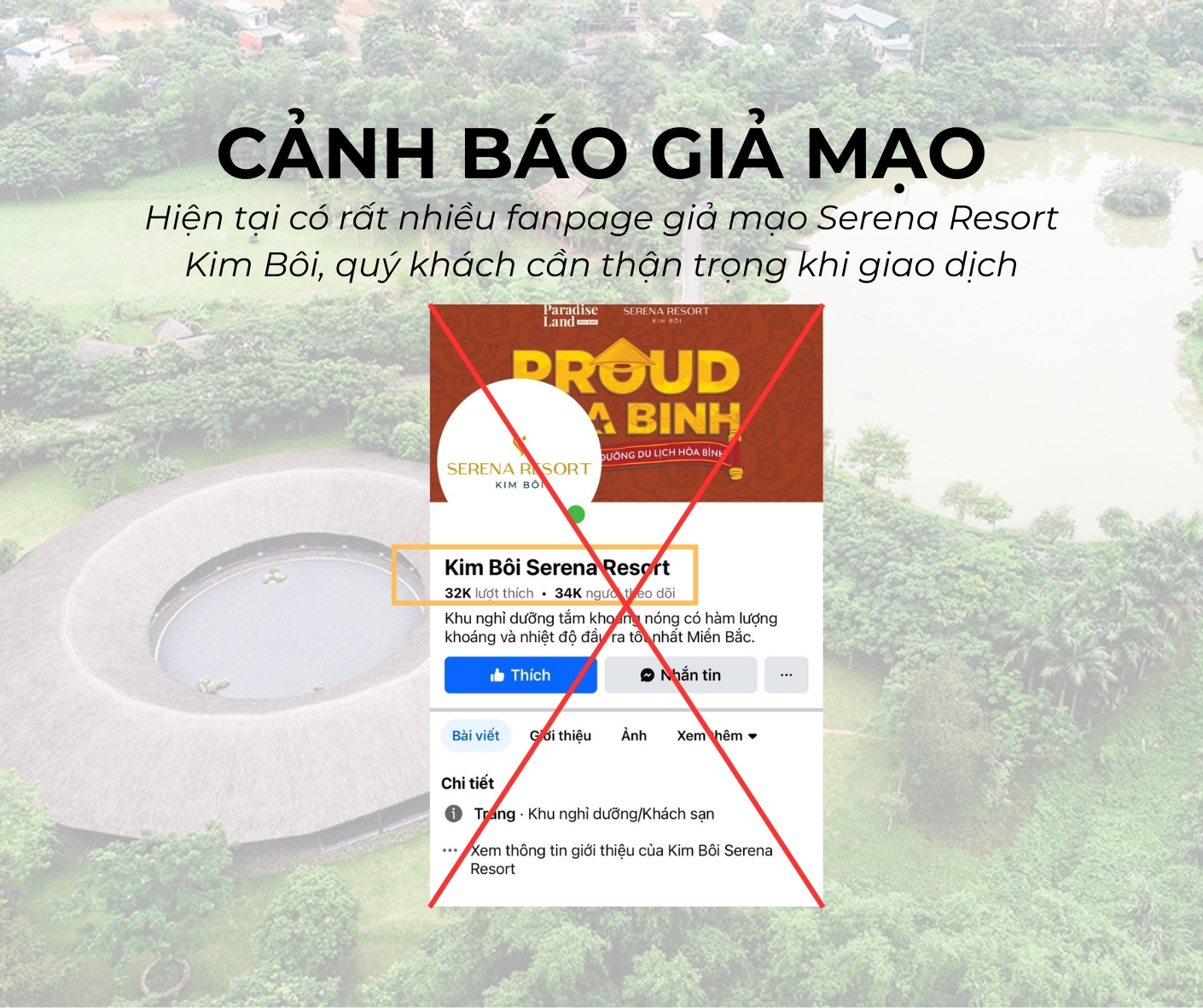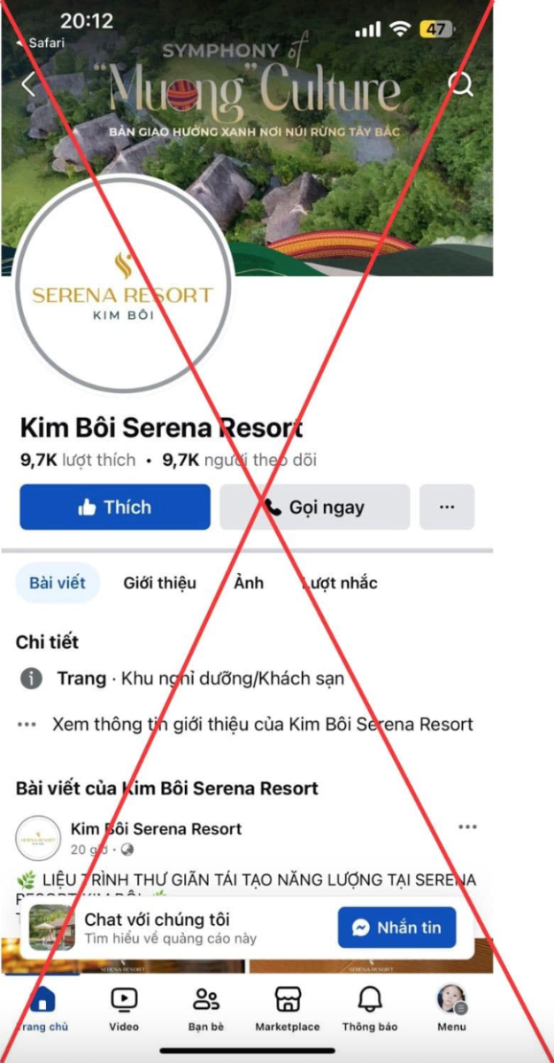 Fanpage giả mạo Serena Resort Kim Bôi (Ảnh chụp màn hình)