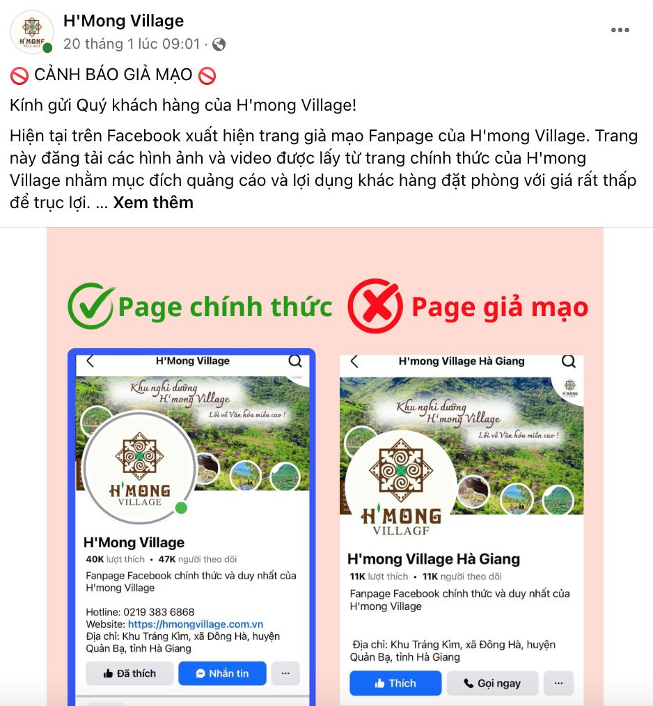 H'Mong Village tại Hà Giang cũng rơi vào tình trạng bị giả mạo (Ảnh chụp màn hình)