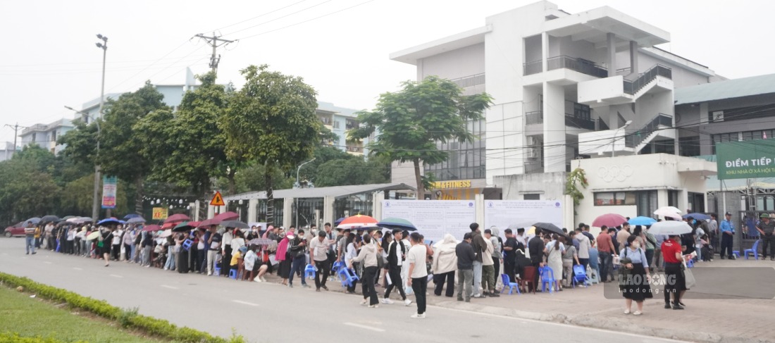Trao đổi với Lao Động, anh Đinh Văn Tuấn (xã Thiên Lộc, Hà Nội) cho biết anh đến xếp hàng từ 9h sáng 17.11, anh rất choáng ngợp khi chứng kiến rất đông người dân đã đến xếp hàng từ tối hôm trước để chờ nộp hồ sơ.