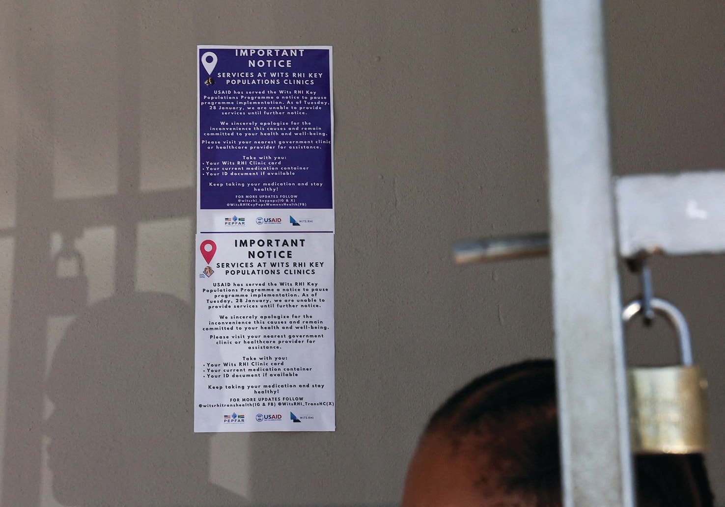 Một thông báo được dán bên ngoài phòng khám ở Nam Phi, cho biết một trong các chương trình của họ được USAID hỗ trợ không thể cung cấp dịch vụ cho đến khi có thông báo tiếp theo. Ảnh: REUTERS