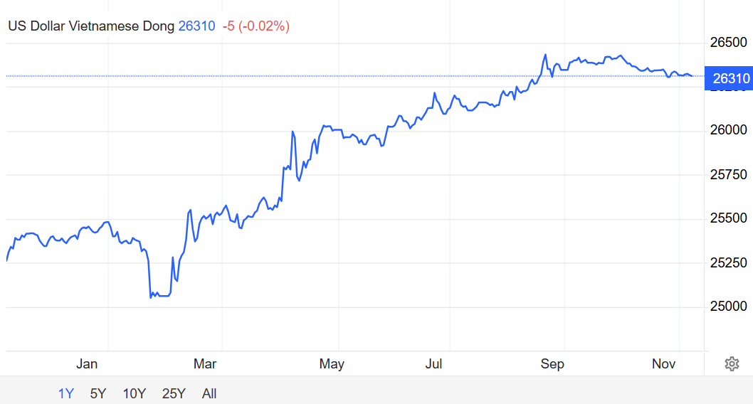 Diễn biến tỷ giá VND/USD. Ảnh: tradingeconomics.
